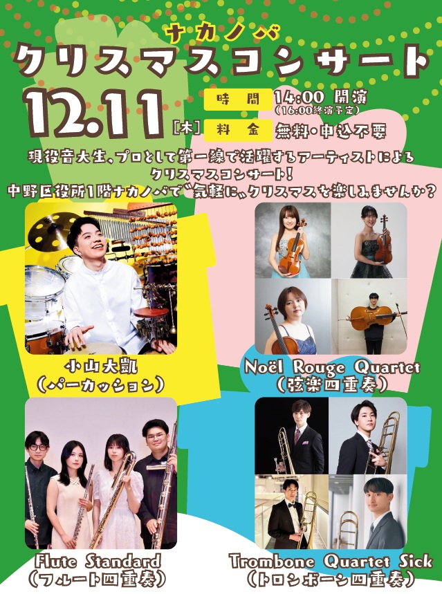12/11(木)ナカノバクリスマスコンサート開催!(中野区役所)